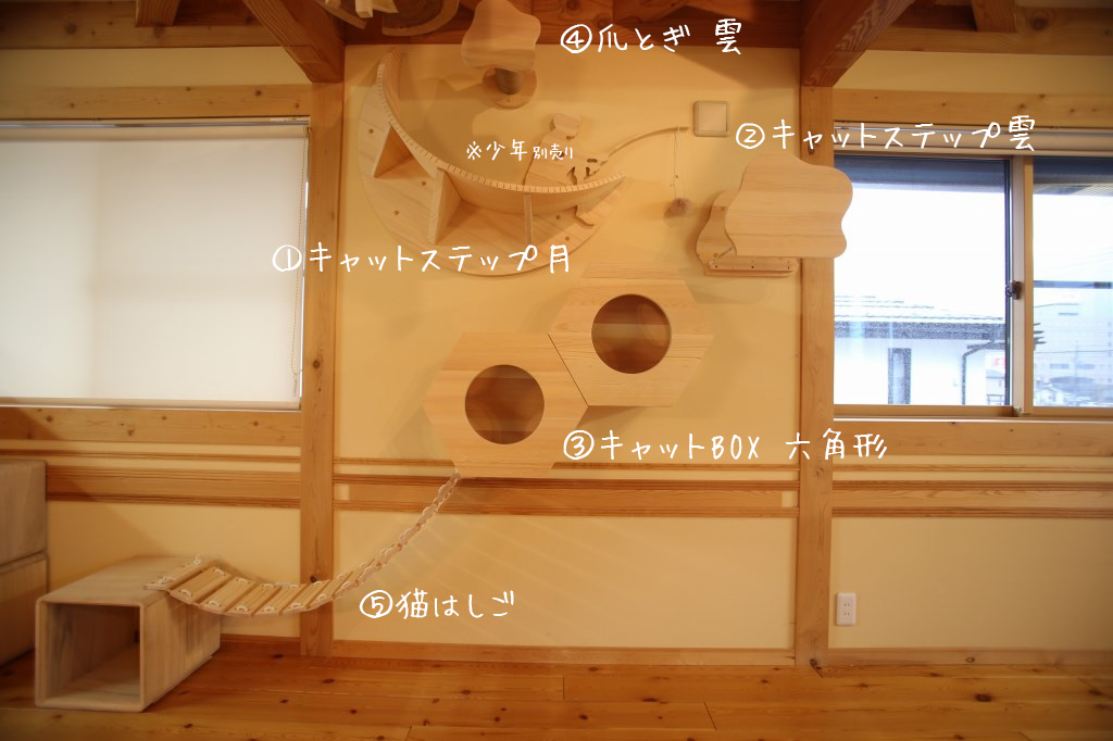 例1)①キャットステップ月※少年なし(1個)+③キャットBOX(1個)+④爪とぎ雲(1個) 計3個