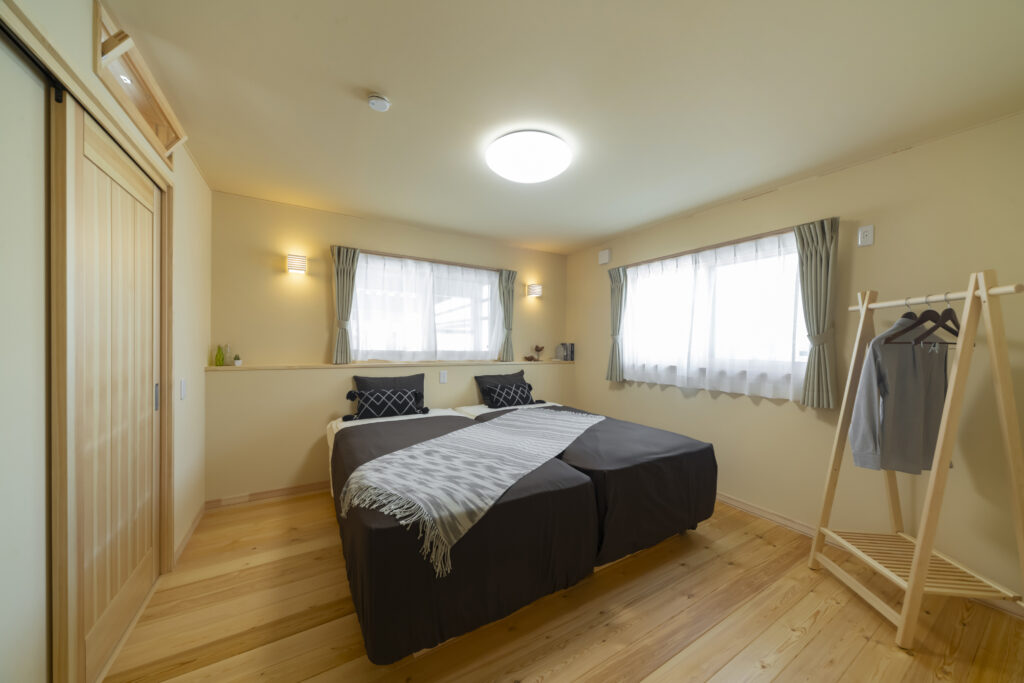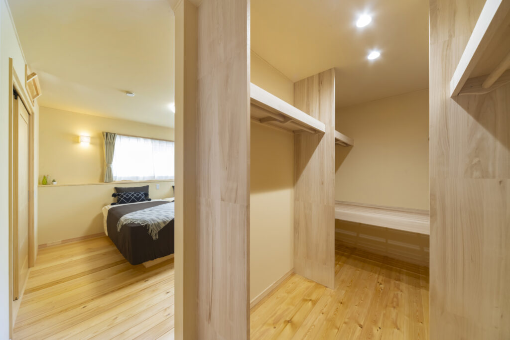 寝室から繋がるウォークインクローゼットは、季節の寝具も収納でき大容量。
