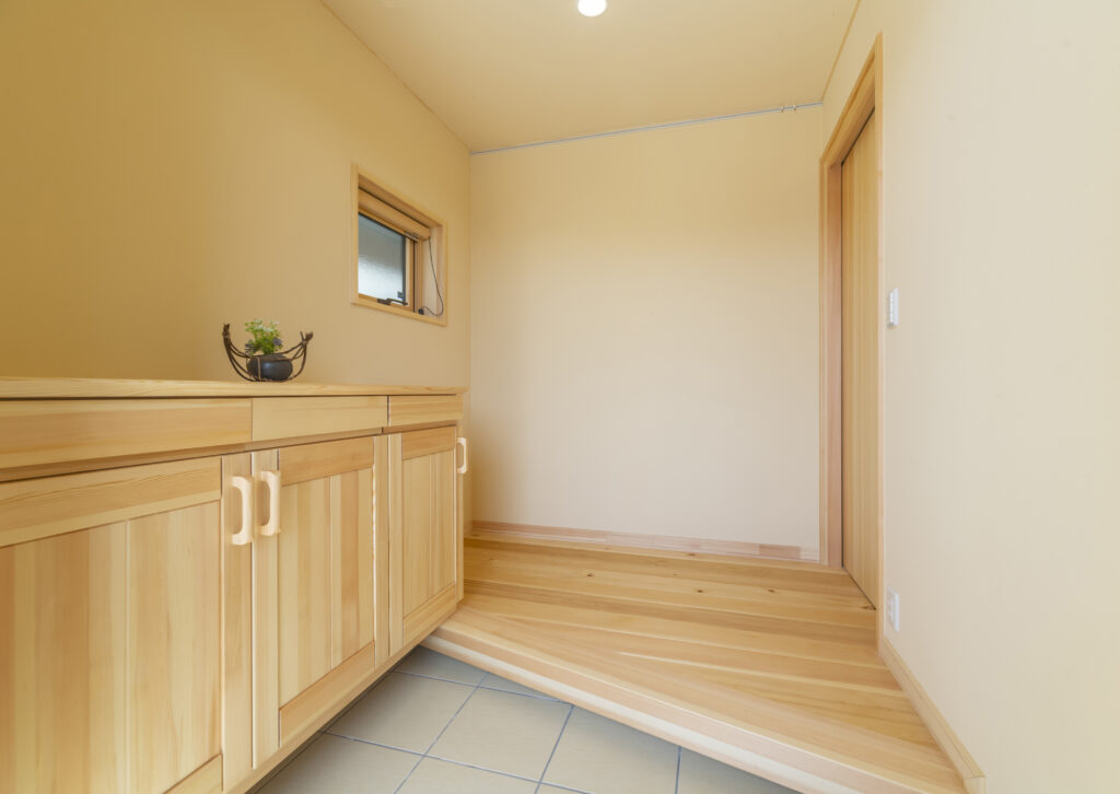 和テイストの落ち着いた玄関。シンプルですっきり整った玄関は狭さを感じさせません。
